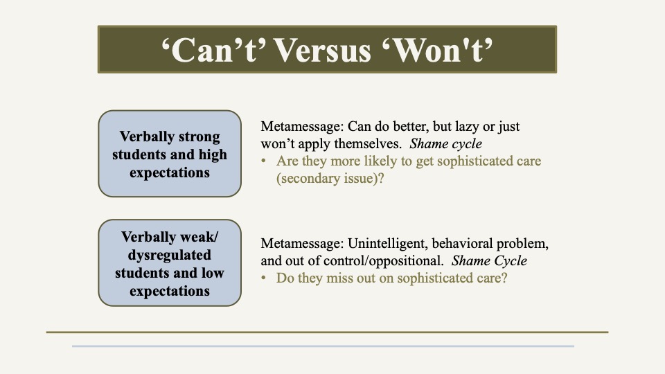 In cognitive splits, this type of discrepancy, where a relative cognitive deficit creates a sort of bottleneck for other cognitive abilities, can result in a pattern of underachievement and disengagement from both academic and social spheres, while fueling a chronic cycle of overwhelm, frustration, and insecurity. For educators and caregivers, recognizing the signs of cognitive splits can be challenging, as these adolescents often develop sophisticated coping mechanisms that mask their difficulties. These discrepancies and accompanying compensatory strategies can lead to mislabeling of these individuals as lazy or unmotivated, further entrenching their struggles.
