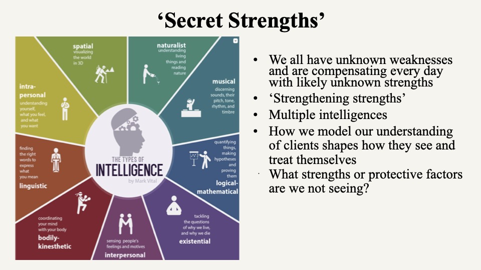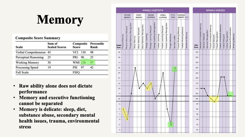 These varying cognitive presentations, determined by a combination of genetics, environmental factors, and personal history, shape a unique intellectual landscape for every client. As an examplf of a cognitive split, one may have a flair for articulating thoughts, but struggle with tasks requiring visual-spatial skills or non-verbal understanding. Conversely, another may have strong spatial abilities yet falter with verbal and written communication tasks. Current research and clinical insights indicate that cognitive splits are more widespread than previously acknowledged (Margolis et. al, 2020). These intellectual disparities often lurk behind overt behaviors or are obscured by the individual’s own compensatory strategies.