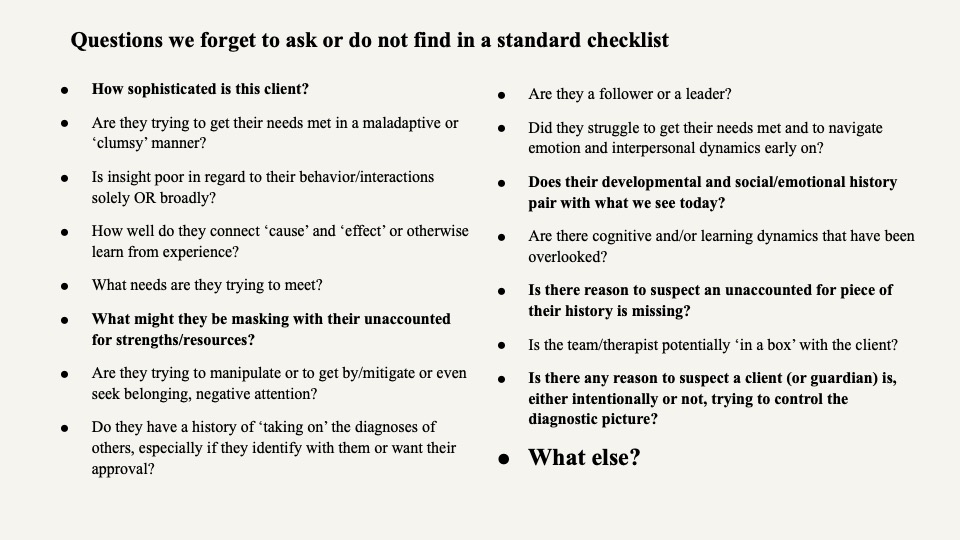 While acknowledging the importance of developmental history, standard practices may not always delve deeply into early childhood experiences or consider how individuals adapt or mask symptoms over time, especially in cases of neurodevelopmental disorders.