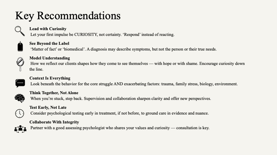 Treatment recommendations following traditional evaluations are often directly tied to the diagnosed disorders, focusing on symptom management and standard treatment protocols.